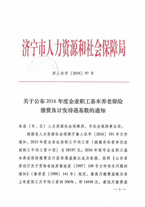 关于公布2016年度企业职工基本养老保险缴费及计发待遇基数的通知