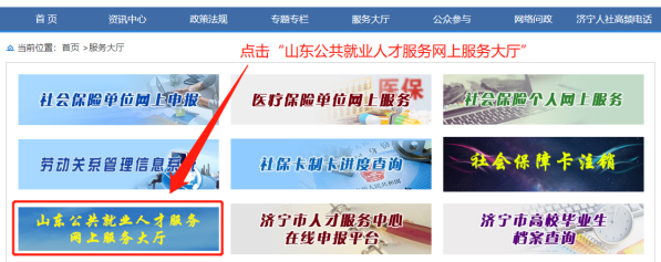 2、点击“山东公共就业人才服务网上服务大厅”。