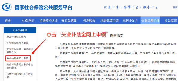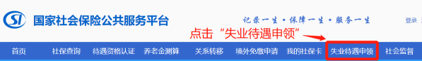 1、登录国家社会保险公共服务平台网站(网址:http://si.12333.gov.cn)——点击“失业待遇申领”。