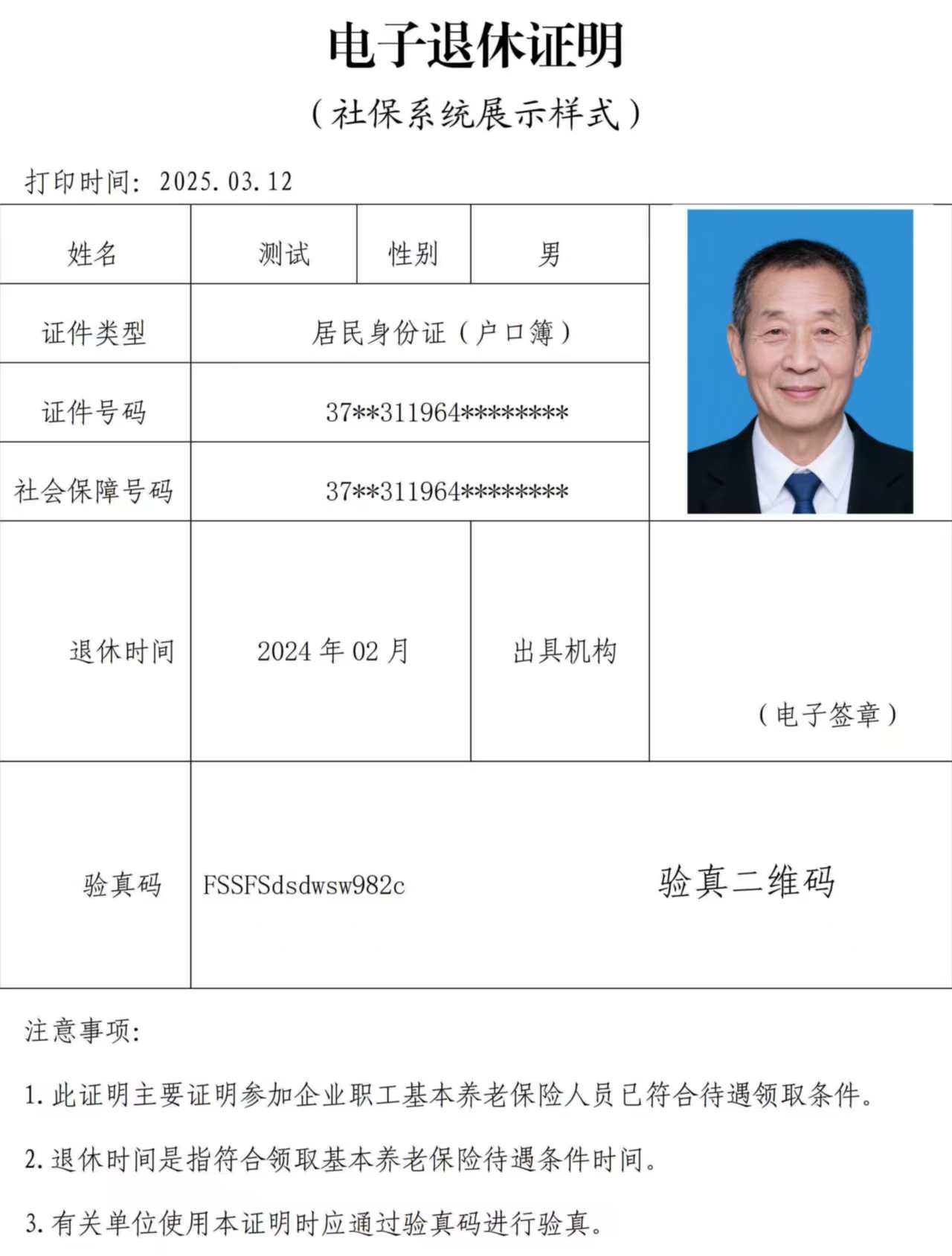 按照《山东省人民政府关于印发山东省数字政府建设实施方案的通知》要求和全面推动“无证明之省”建设工作部署,济宁市企业职工电子退休证明(市本级)已正式启用。养老保险市直参保企业退休人员可通过山东省社会保险公共服务平台、“爱山东”APP、社会保险自助服务终端等申领电子退休证明。