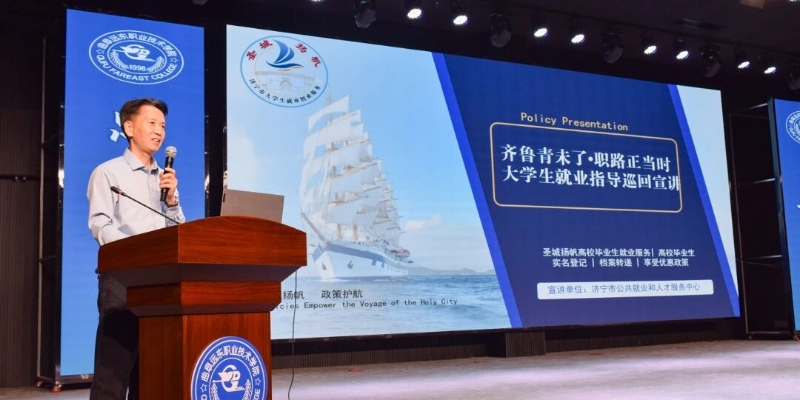 为深入贯彻落实省市关于高校毕业生就业工作的决策部署,进一步强化就业指导服务,提升毕业生就业竞争力,促进高质量充分就业,4月23日,济宁市人社局前往曲阜远东职业技术学院开展“公共就业服务进校园暨‘齐鲁青未了·职路正当时’大学生就业指导巡回宣讲”活动,为曲阜远东职业技术学院的1000余名学子进行政策解读。