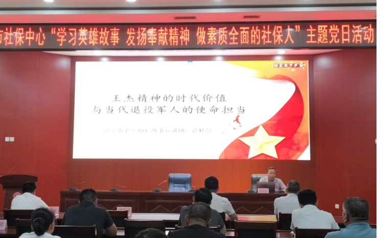 8月1日,为庆祝中国人民解放军成立98周年,贯彻落实习近平总书记关于退役军人工作的重要论述精神,持续加强退役军人思想政治工作阵地建设,市社保中心组织全体退役军人和青年干部开展“学习英雄故事 发扬奉献精神 做素质全面的社保人”主题党日活动,中心党委委员、副主任王焱参加并主持活动。