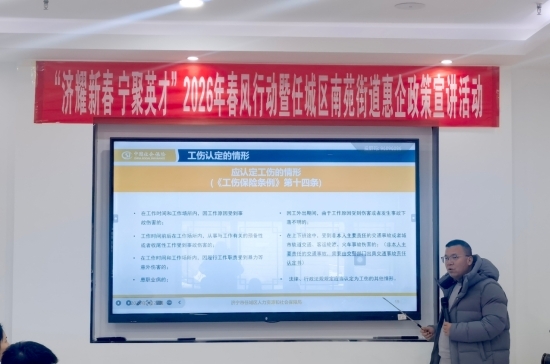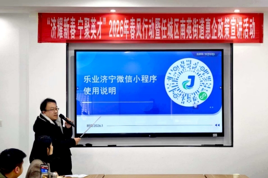 1月21日,“济耀新春 宁聚英才”2026年春风行动暨任城区南苑街道惠企政策宣讲活动在南苑街道为民服务中心顺利举办,市就业人才中心、任城区人社局、农商银行相关业务专家和相关企业负责人共50余人参加活动。