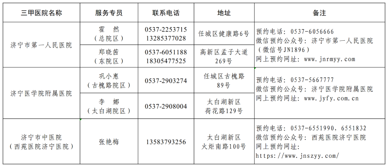 三、高层次人才享受就医绿色通道服务三甲医院名单